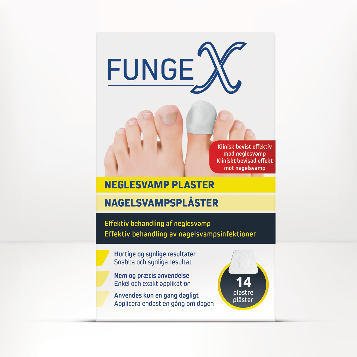 FungeX-plastre til neglesvamp er formuleret som en topisk neglebehandling og har en gennemtrængende formel, der behandler neglesvamp og forbedrer neglenes udseende.